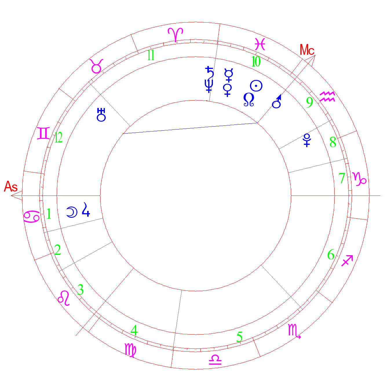 Способность к медицине и естественным наукам. Неожиданные исцеления, магия. Если способности к магии нет - скрытный характер, устойчивость. Тайные страхи. При выраженности знаков Скорпиона, Тельца, Рака, Козерога может давать сексуальные извращения (АША). Склонность к химии, медицине, эксплуатации, ущерб из-за излишней агрессивности и насилия, склонность к тифу. Градус Солнца (Кефер)